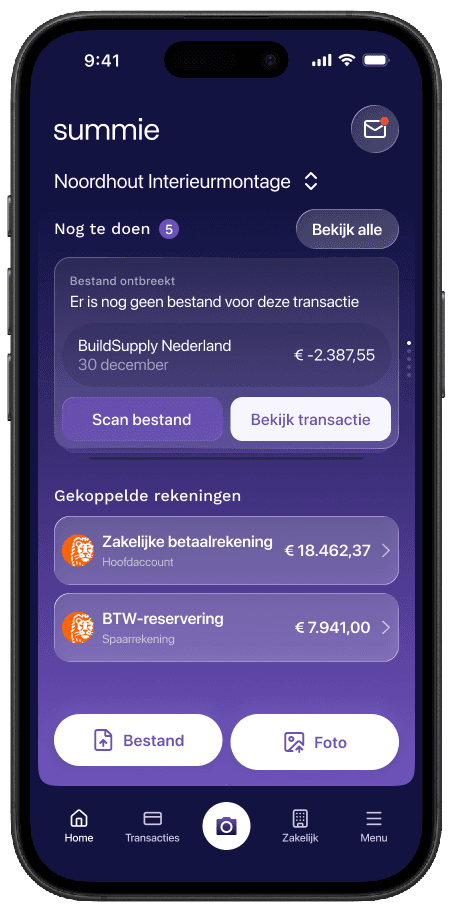 Vraagposten ontstaan niet meer aan het einde van de periode, maar worden door summie realtime gedetecteerd en klaargezet voor de ondernemer in een overzichtelijke app.